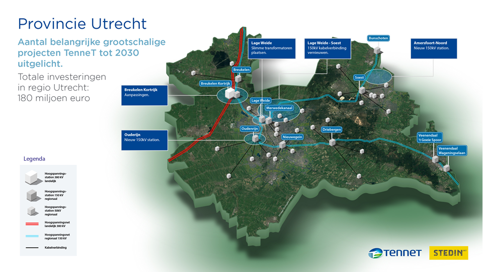 Ook in de provincie Utrecht loopt het hoogspanningsnet tegen de grens aan van de maximale capaciteit om duurzaam opgewekte energie, bijvoorbeeld uit zonnepanelen, terug te leveren aan het net. Inmiddels zijn er in de regio concrete plannen voor meer dan 500 megawatt aan duurzame terugleverinitiatieven. TenneT gaat het hoogspanningsnet in de regio de komende jaren fors aanpassen en uitbreiden en investeert hier tot 2030 circa 180 miljoen euro. Ook worden op het hoogspanningsstation in Utrecht Lage Weide slimme transformatoren geplaatst. Deze installaties kunnen duurzame elektriciteit sturen en verdelen, zodat het netwerk uiteindelijk beter kan worden benut. In alle uitbreidingsplannen van TenneT is rekening gehouden met verdere toekomstige ontwikkelingen in de regio, die onder meer in de Regionale Energie Strategie (RES) zijn opgenomen.