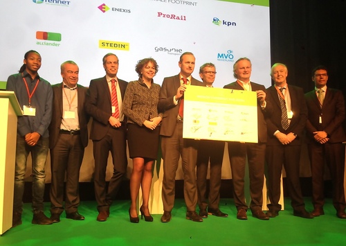 Bunnik, 28 januari 2016 – Enexis, Gasunie, Alliander, Stedin, TenneT (energie), KPN (telecommunicatie & ICT) en ProRail (spoor) zijn van start gegaan met ’Fair Infra’. Via het platform groene netten gaan deze zeven grote infrastructuurbeheerders samenwerken op het gebied van energie- en emissiebesparing, het inkopen van duurzame energie en circulair- en eerlijk materiaalgebruik voor aanleg, beheer en onderhoud van netten. De ambitie werd vandaag tijdens het Dutch Power Symposium in Bunnik ondertekend.De infrastructuurbeheerders hebben zes thema’s aangemerkt waarop ze gaan samenwerken: energiebesparing in het bedrijf, circulaire kabels en leidingen, circulair spoor, vergroenen van het energiegebruik, Fair IT en waar mogelijk het gezamenlijk gebruiken van infrastructuur.