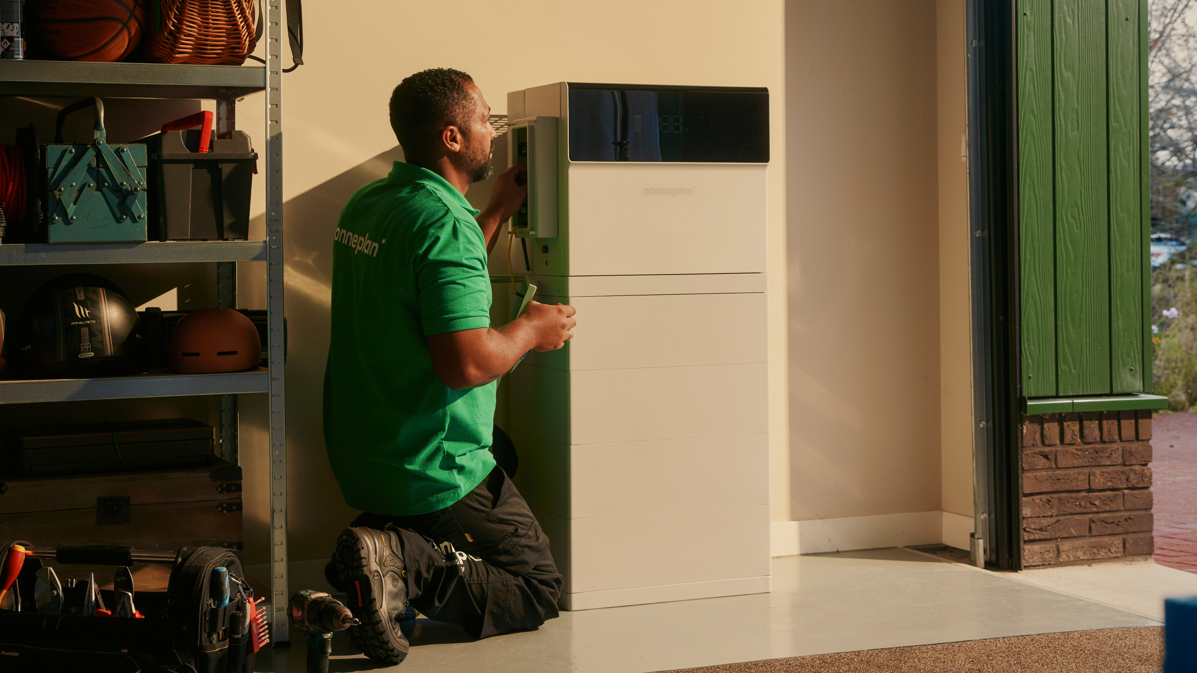 Zonneplan-deelnemer Frank Jansen uit Dordrecht hoefde niet lang na te denken toen hij werd benaderd om mee te doen. Door zijn werk in de bouw is hij zich al langer bewust van de problemen op het elektriciteitsnet. Bovendien rijdt hij elektrisch en heeft hij de nodige zonnepanelen op zijn dak. “Alles wat je niet hoeft af te nemen van je energiebedrijf is mooi meegenomen. Ik was me al langer aan het verdiepen in een thuisbatterij, maar die waren een paar jaar geleden gewoon nog te duur. Toen ik hoorde dat ik met korting een batterij kon aanschaffen, ben ik overstag gegaan.” In de praktijk merkt hij nauwelijks iets van de inzet van de batterij. “Je hebt er geen last van, hij doet gewoon z'n ding. Ik kijk dagelijks in de app om te zien wat er gebeurt. Dat vind ik interessant, maar belangrijker vind ik het idee dat ik straks mijn eigen zonnestroom kan opslaan en daarmee ’s avonds mijn auto kan opladen.”