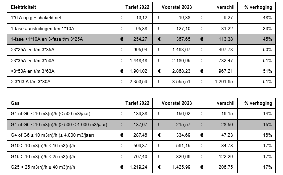 De tarieven van netbeheerders zijn wettelijk gereguleerd. Toezichthouder ACM bepaalt hoeveel elke netbeheerder voor zijn diensten bij consumenten en bedrijven in rekening mag brengen. Die kosten zijn een onderdeel van de energierekening. De netbeheerders beseffen dat dit een forse stijging is, zeker in combinatie met de hoge energieprijzen.