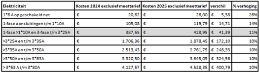 De tarieven van netbeheerders zijn wettelijk gereguleerd. Toezichthouder ACM stelt vast hoeveel elke netbeheerder voor zijn diensten bij consumenten en bedrijven in rekening mag brengen. Die kosten zijn een onderdeel van de energierekening. Ook de netbeheertarieven van zakelijke klanten en grootverbruikers van energie stijgen. De mate van die stijging is afhankelijk van de grootte van de aansluiting en het verbruik.